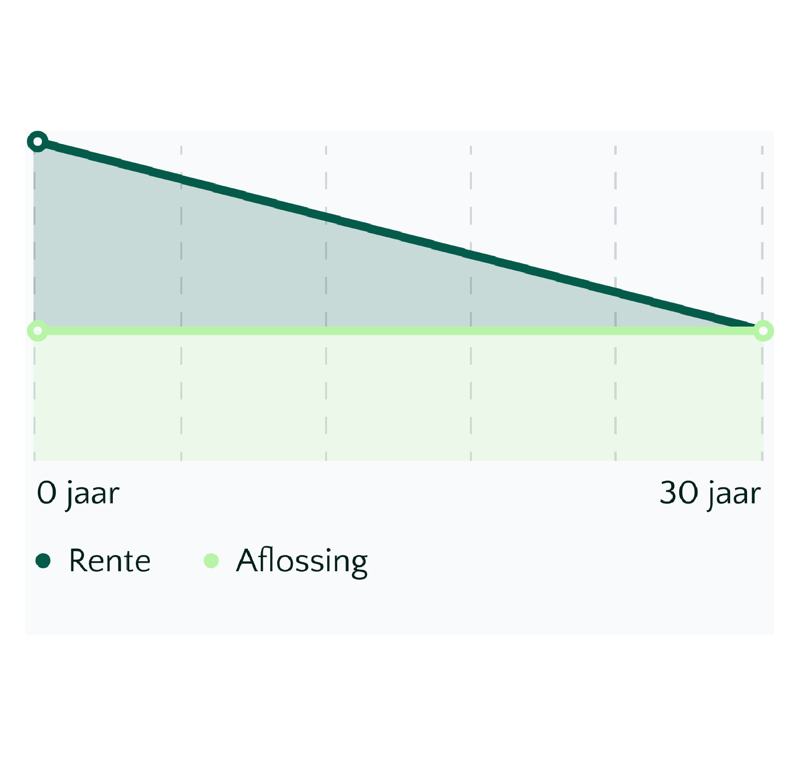 Je lost elke maand evenveel af, daarom daalt je schuld daalt sneller dan bij een annuïteitenhypotheek. - Steeds lagere maandlasten